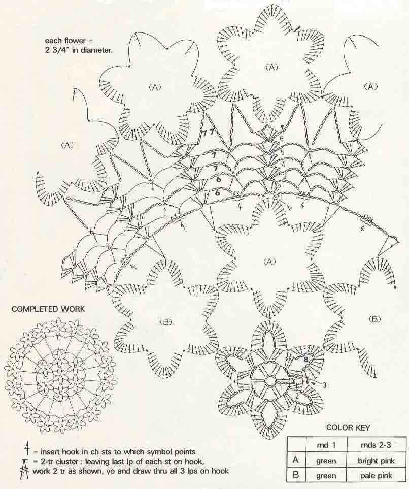 Далее еще 5 рядов по схеме, в 6-м при вязании больших арок соединяемся с ромашками в кайме.
