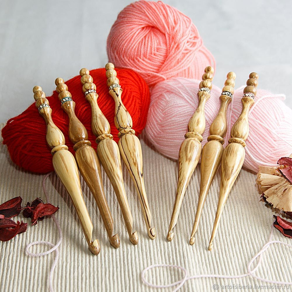 Выбрать крючок не так сложно, как может показаться. Необходимый вам номер, обозначающий размер инструмента, указанна мотке выбранной пряжи. Что касается материала, отдавать предпочтение лучше дереву или металлу. Пластиковые крючки при работе с натуральной шерстью не удобны, так как могут наэлектризовываться, что сильно усложняет процесс вязания.