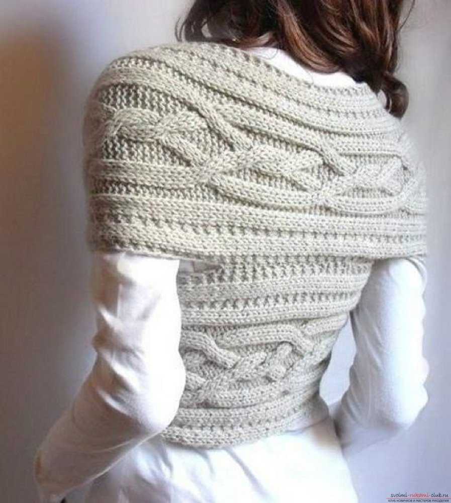 Новым трендом в моде стал уникальный аксессуар туалета женщин – шарф с рукавами. Такой вид повседневного туалета актуален в холодное время года, поскольку исполняет роль не только шарфа, но и свитера. А если выбрать трикотаж узорчатого покроя, то такая вещь станет незаменимым болеро к любому вечернему наряду. Это обеспечит любой моднице массу комплиментов сильного пола и завистливые взгляды женщин.