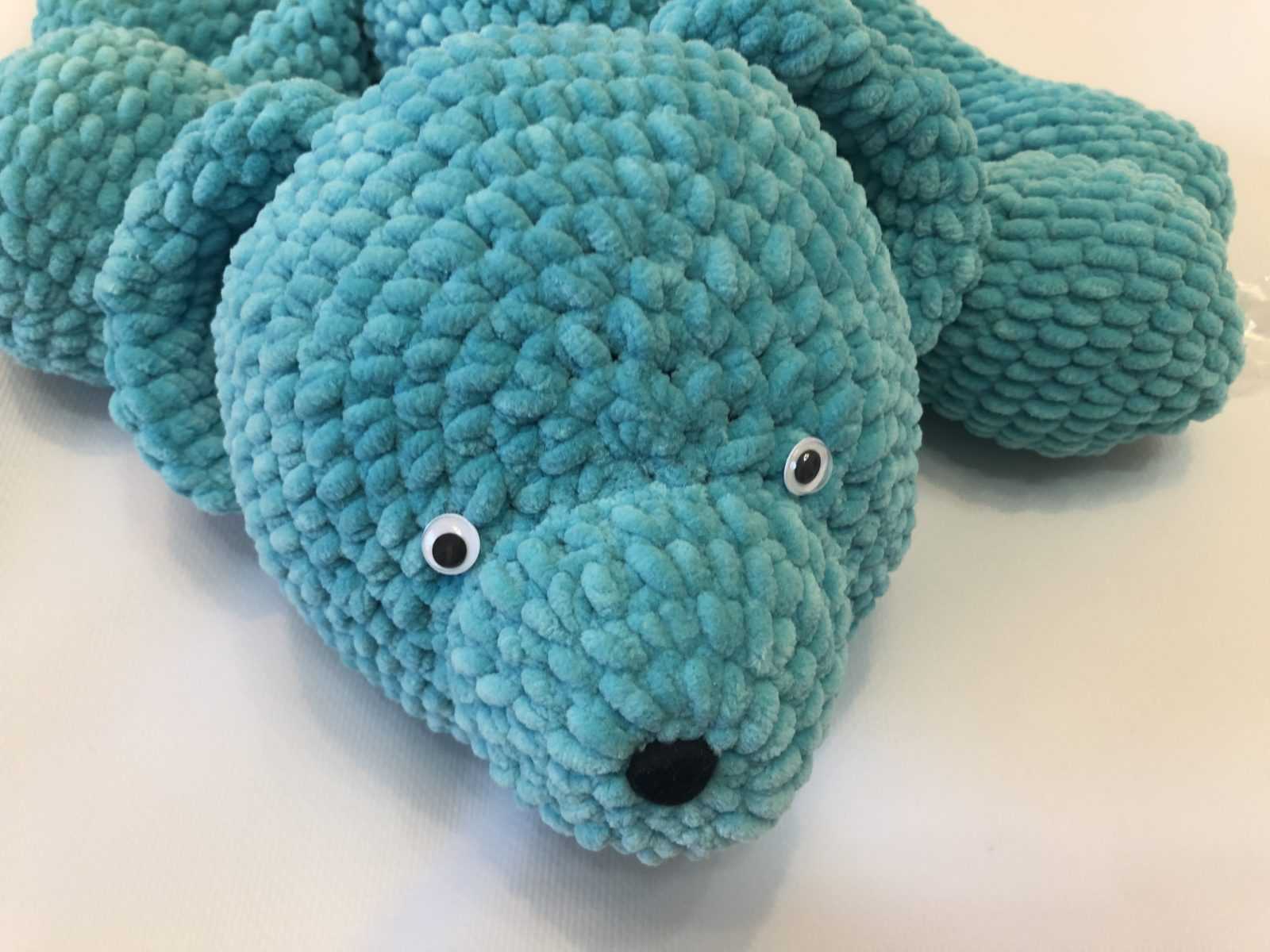Медведь крючком из плюшевой пряжи почти готов. Осталось только собрать воедино.