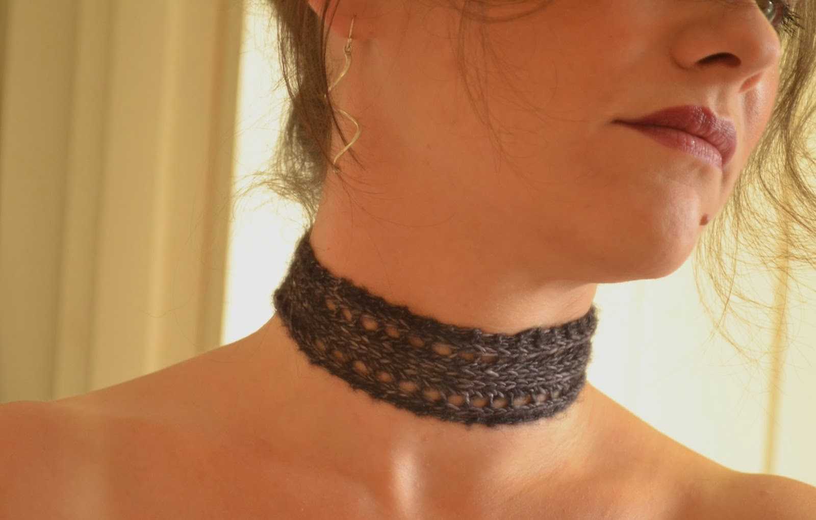 Вязаный чокер хорош тем, что он не боится воды, а также довольно просто вяжется как крючком, так и спицами.