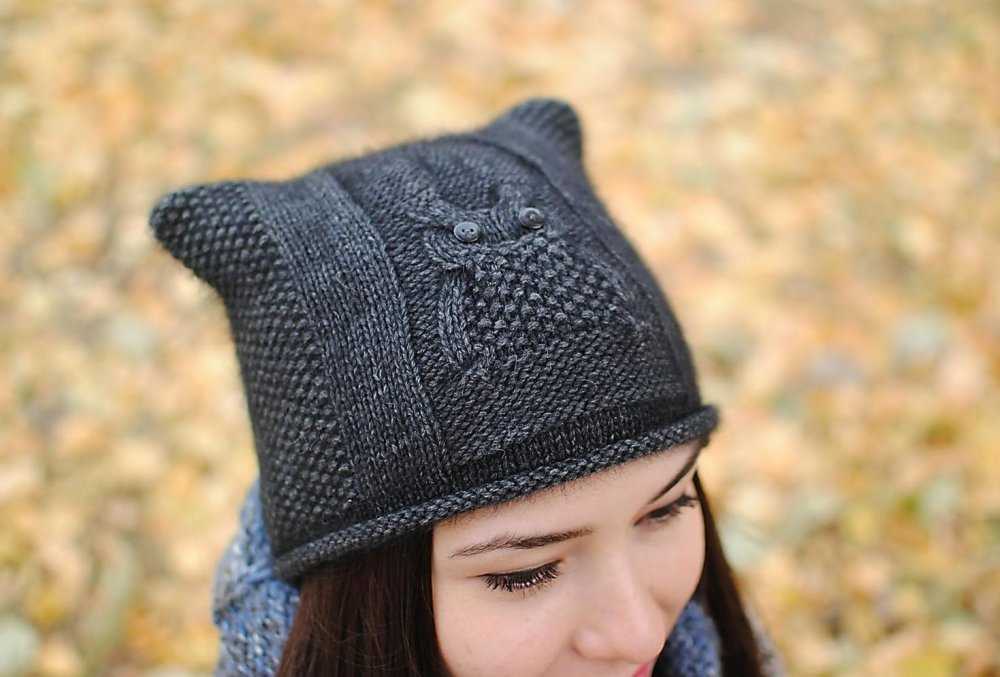 Как самостоятельно связать теплую шапку с узором «Сова»