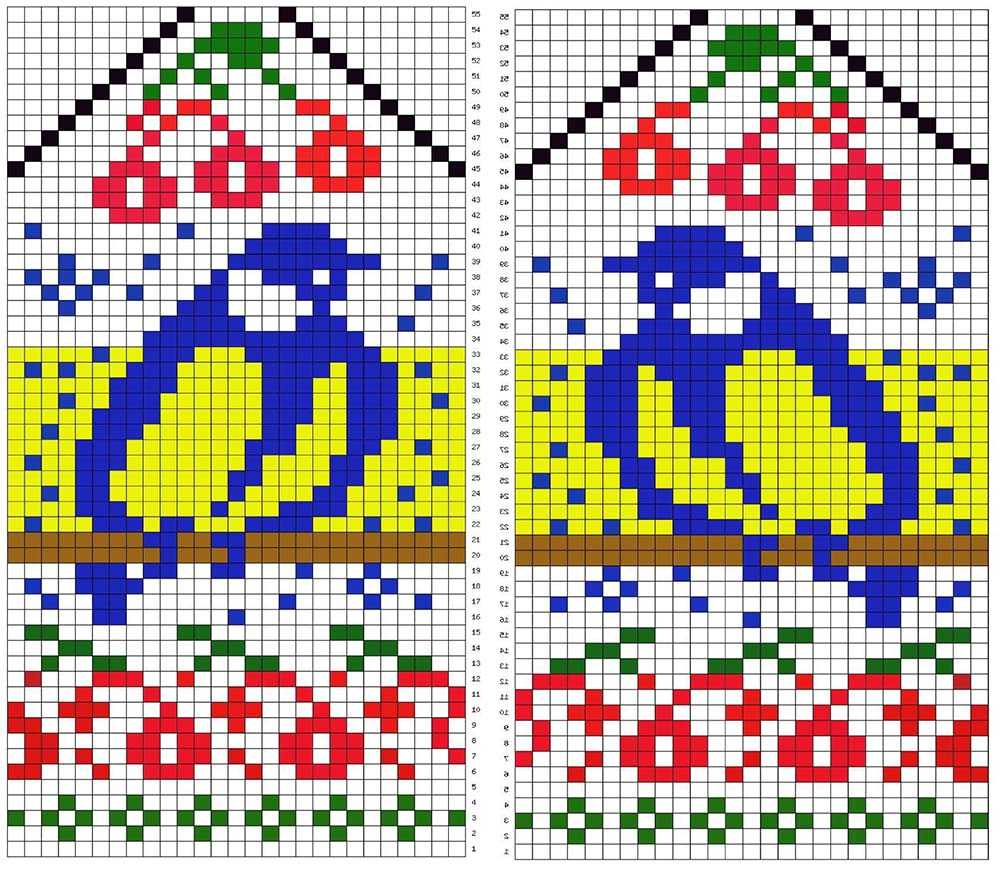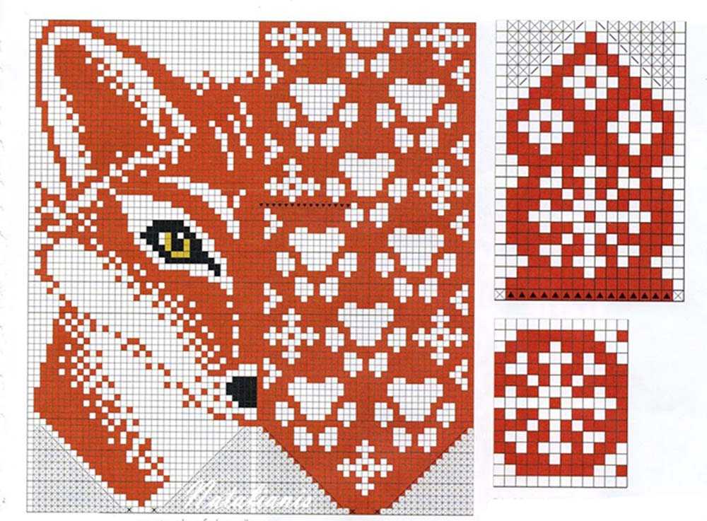 Я подобрала несколько схем для вязания не только норвежскими орнаментами, но и рисунки для варежек с птичками, с мордочками животных, а именно – лисичками.