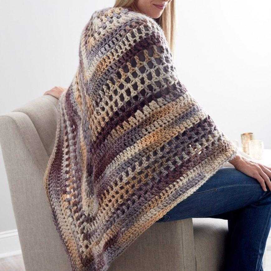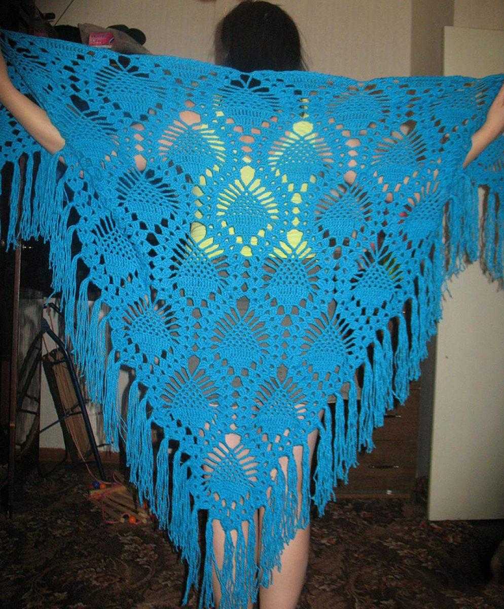 Сегодня модными считаются изделия из «Кауни» – цветных мотков пряжи с градиентом (плавным переходом от одного оттенка к другому). Но чем сложнее цветовое решение, тем проще должна быть схема узора шали крючком.