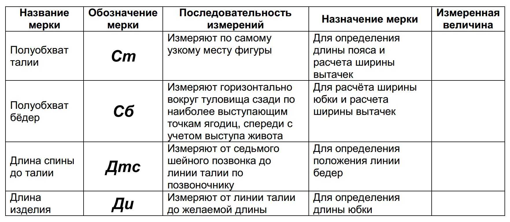 Если вы уже определились с будущим видом вашей вещи, то следует снять мерки и построить выкройку. Для этого вам потребуются следующие данные: обхват талии и бедер, а также длина изделия.