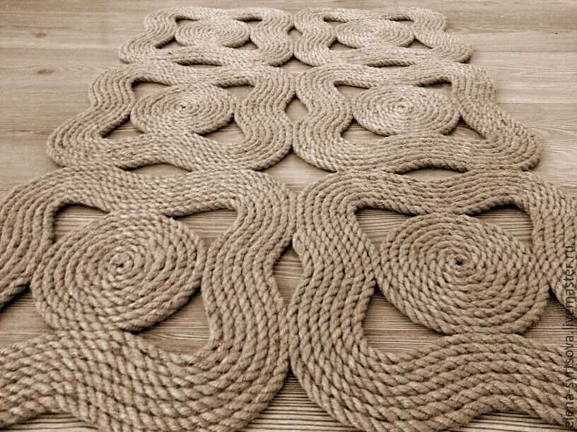 Шнуры. Веревка состоит из полиэстера, который особым образом сплетают, что придает материалу особую прочность. Такие ковры гипоаллергенны, не притягивают пыль. Полиэфирный шнур дороже обычных материалов и требует особой техники плетения. Поэтому такой материал не рекомендуется для новичков.