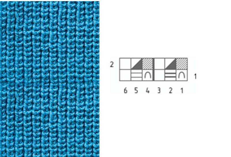 Раппорт такой резинки состоит также из 2 рядов. Число петель – четное.