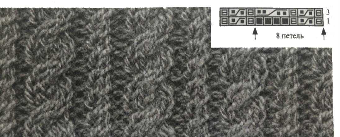 На протяжении всего первого ряда чередуются две лицевые петли с двумя изнаночными.
