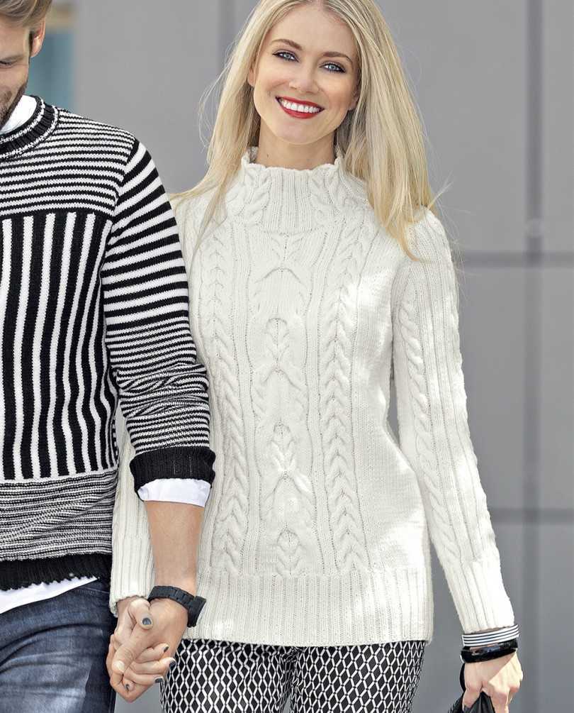 - Снежным и молочным – барельеф проступает интенсивно. Классно воспринимается в классическом луке – актуально сочетание разных, казалось бы несочетаемых вещей.