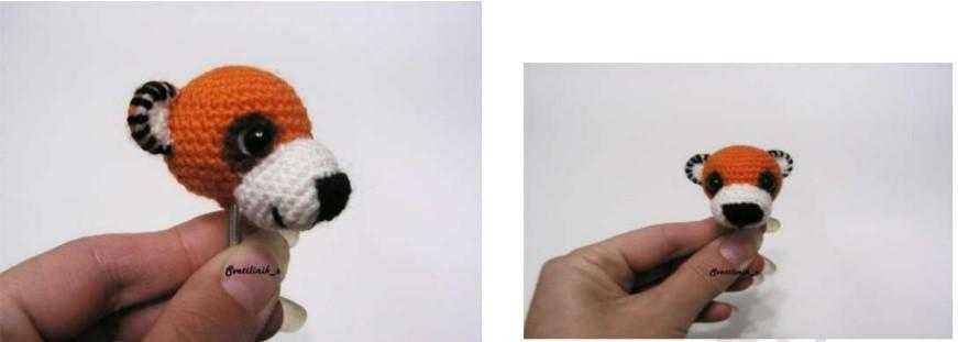 - Здесь для тигренка крючком потребуется белая нить. Нужно набрать 7 воздушных петель и связать их вокруг сформированной косички.