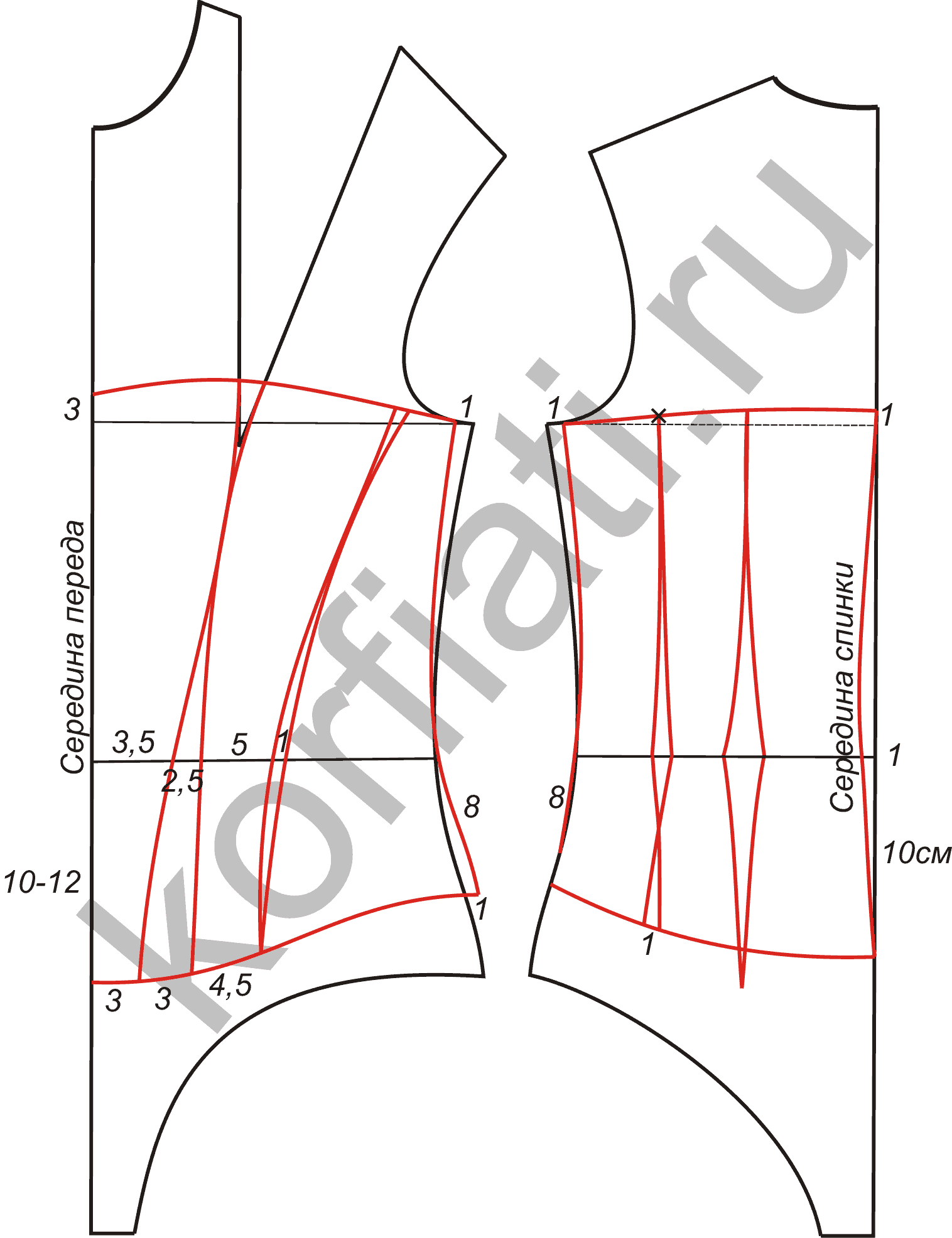 Внимание! Корсет для девочки не должен давать акцент на талию. Пример расчетного метода выкройки