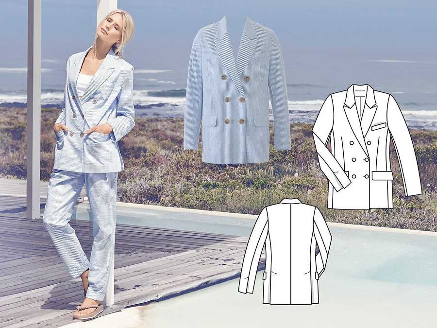 Если вы хотите сшить жакет по всем правилам — с прорезными карманами с листочкой, с лацканами и воротником и шлицей, приглашаем вас в Академию Burda на онлайн-курс по пошиву классического двубортного жакета.