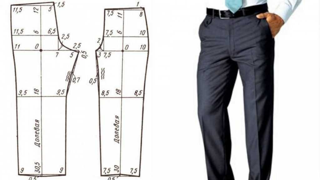 Выкройка мужских брюк от женских отличается тем, что у мужской модели имеются особые детали в виде пространства около паха. Кроме того, подобные вещи имеют большую ширину и меньшую талию.