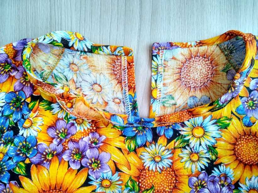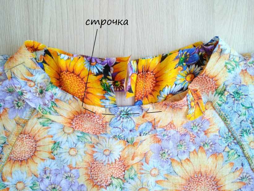 Обтачки притачаны к горловине, не доходя по 3 см до плечевых швов.
