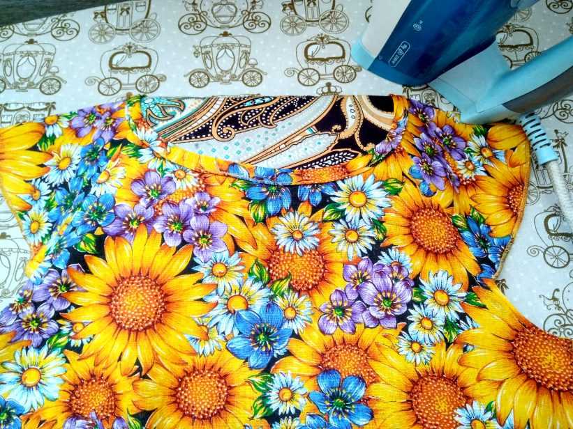 6. Разглаживаю горловину утюгом с паром на гладильной подушечке.