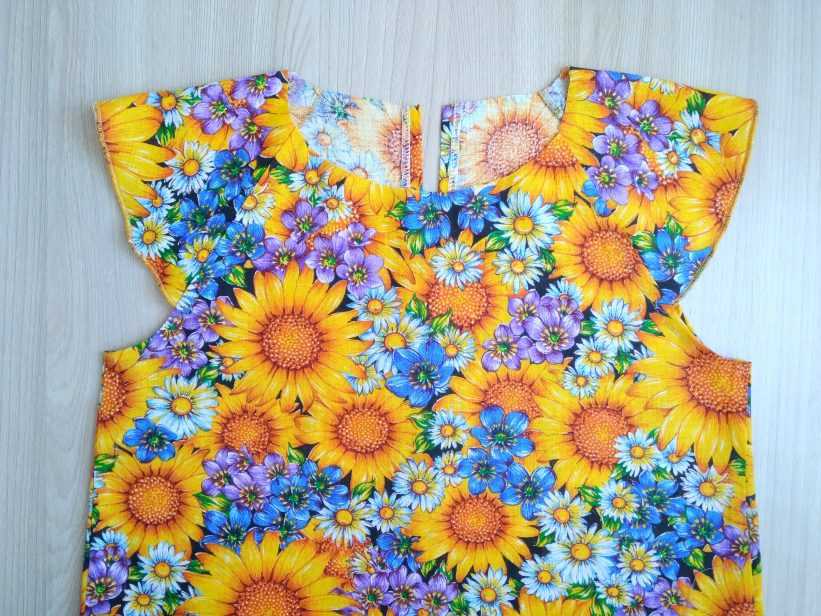 Обтачки сложите с изделием лицом к лицу, совместив по проймам платья, горловине переда и горловине спинки платья.