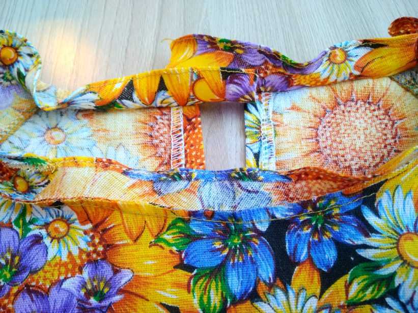 - Надеемся наш мастер-класс с подробным описанием процесса обработки горловины шифонового изделия с помощью косой бейки помог вам в шитье.