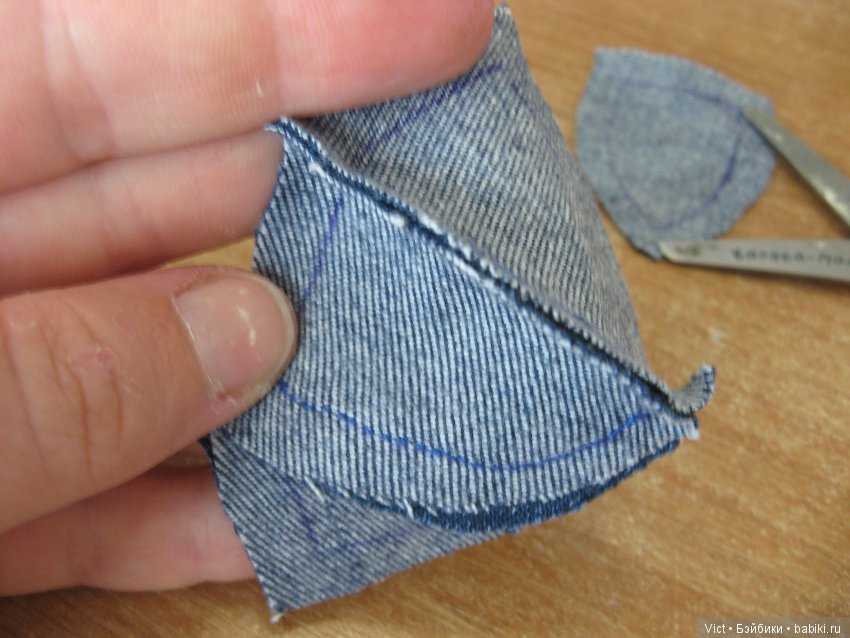 Чтобы козырек лучше «выложился» при выворачивании, обязательно срежьте припуск до 0,5см.