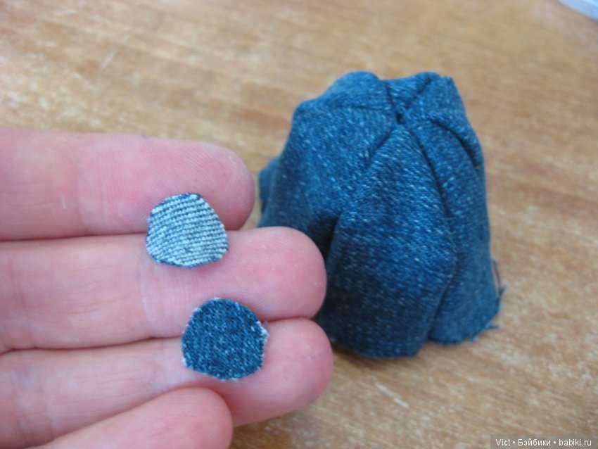 Если вы взяли не очень плотную ткань, на месте глаз с обратной стороны наклейте кусочек флизелина.