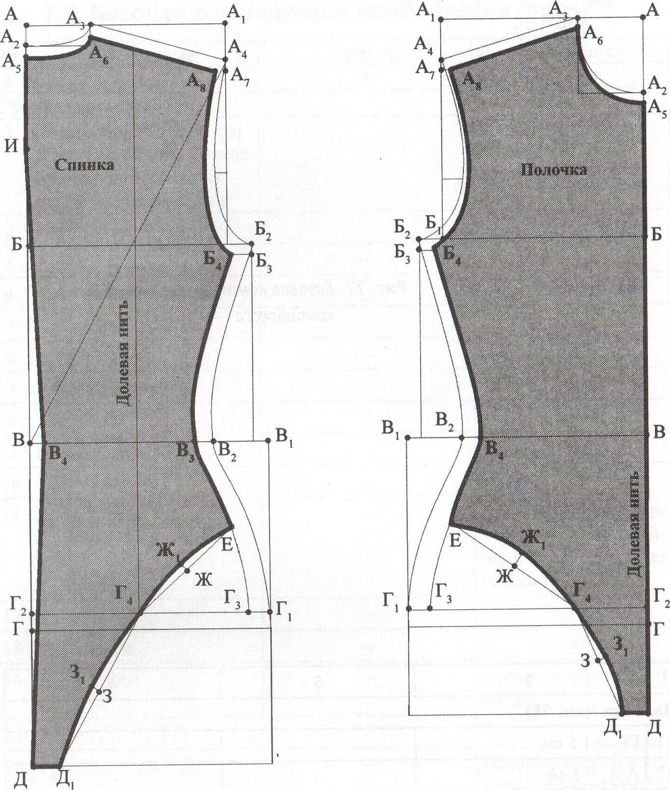 Оформляем линию талии и низ плавной выгнутой кривой через точки Т, Т4, Т3 и Н, Н4, Н3.