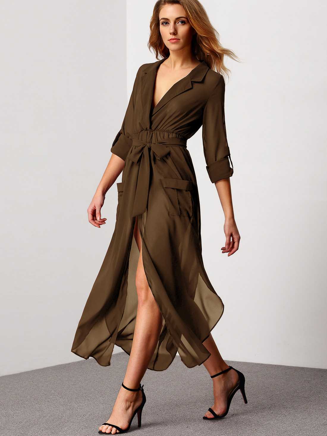- Платье-рубашка из шифона может иметь конструктивные элементы: драпировку, летящие рукава, складки, подол сложного кроя. Воздушность материала позволит сшить великолепный наряд для летней прогулки.