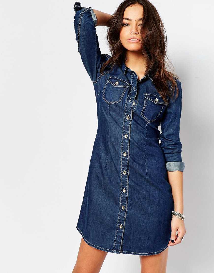 - Для этих же целей прекрасно подойдет платье-рубашка из джинсовой ткани. Плотный практичный материал требует определенных навыков при работе с ним, но результатом будет наряд, который точно не запылится в гардеробе.