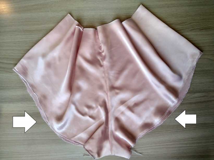 18. Приступаю к шитью низу моего кружевного комплекта. Так выглядит выкройка шорт с указанием всех срезов.