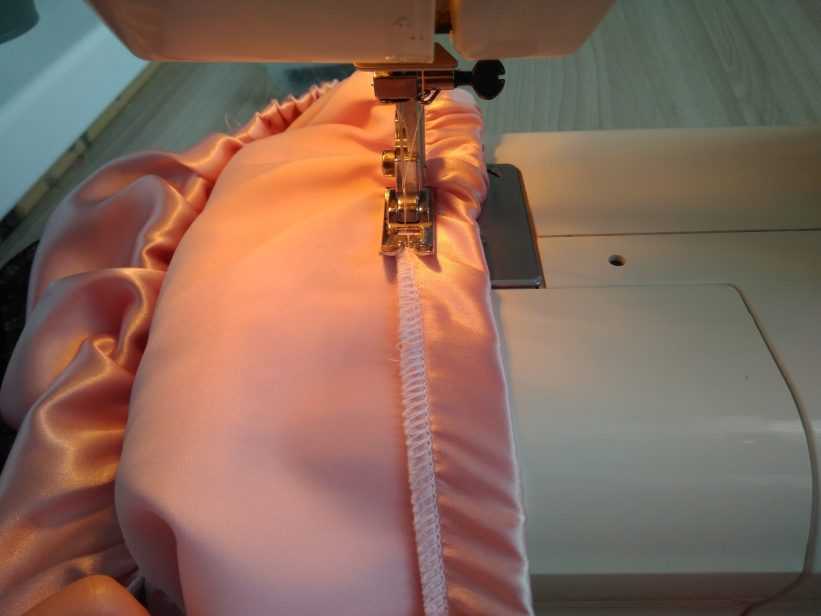 21. Приступаю к пошиву среза по линии талии. Соединяю края резинки между собой.