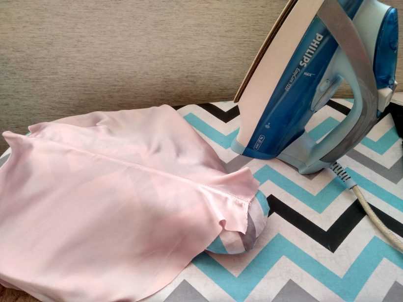 Выворачиваем лиф, вымётываем по проймам и горловине, приутюживаем. Совмещаем боковые срезы, скалываем, прострачиваем, приутюживаем.