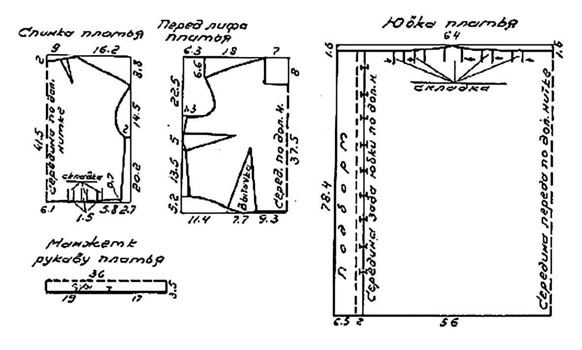 Для платья потребуется отрез, имеющий длину меньше одного метра.