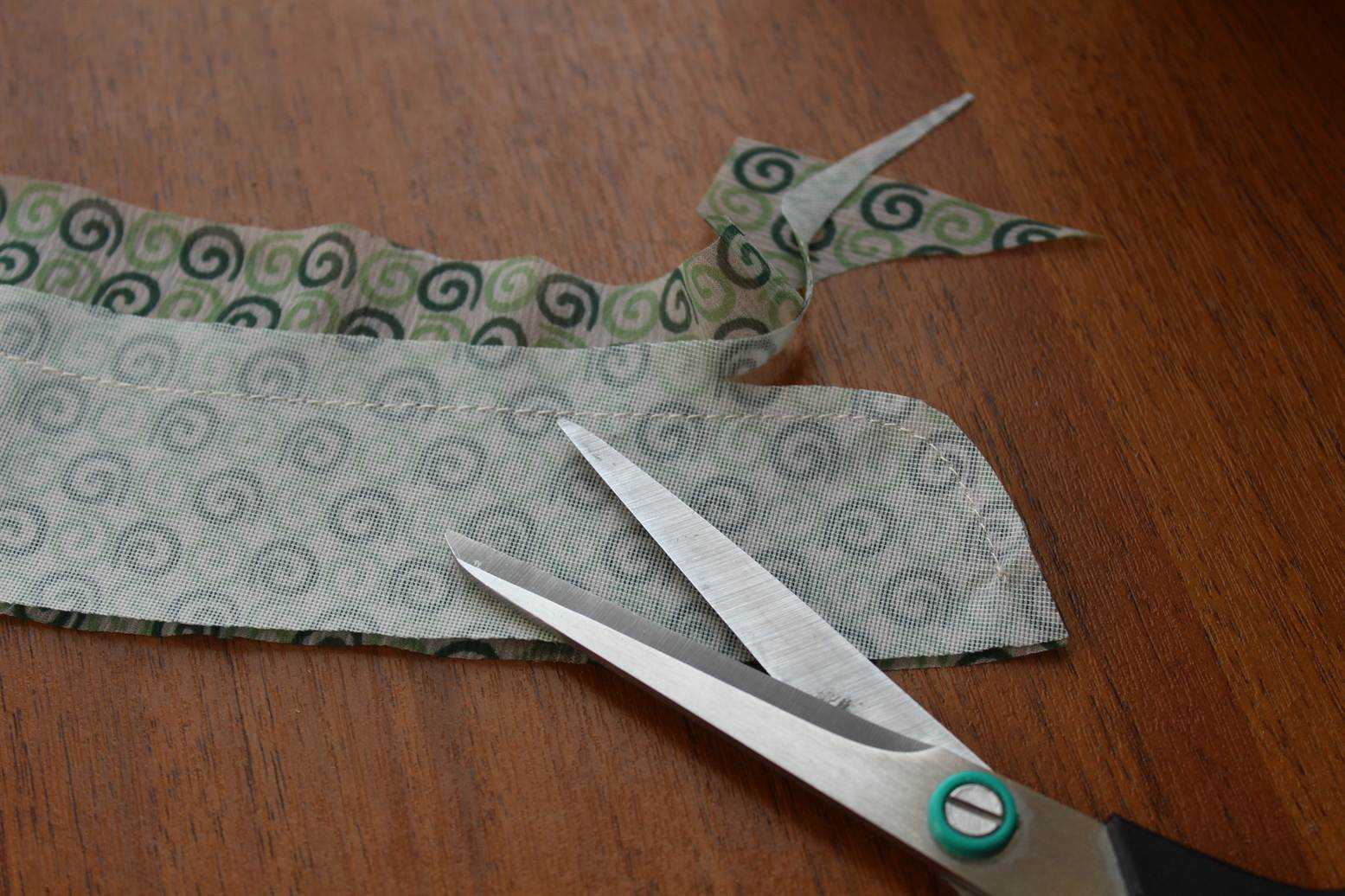 Стачайте детали на машине, подрежьте лишнюю ткань, оставив 0,5 см.