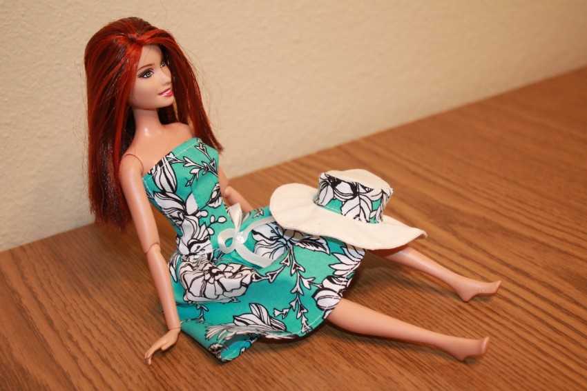 Проследите, чтобы не было никаких складок или лишнего свободного места. Всё качественно наметьте, а потом сшейте. Вот такая простая и современная выкройка платья для барби. Здесь нет ничего сложного для заботливой мамочки.