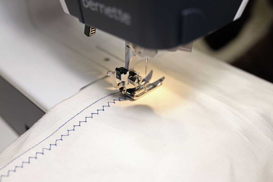 - Узкий «зигзаг» при использовании обычной длины стежка достаточно эластичен и его можно использовать для тянущихся тканей;