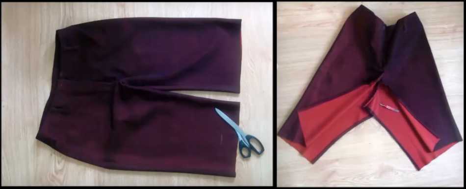 Первый вариант: мы просто подворачиваем брюки, как показано на фото и прошиваем, даже обрезать ничего не придется.