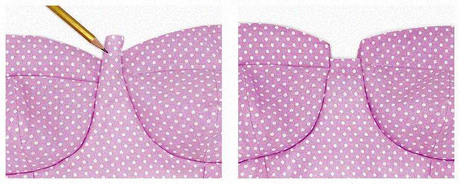 На выкройке переда сделать дополнительную вытачку глубиной 1см как показано на .
