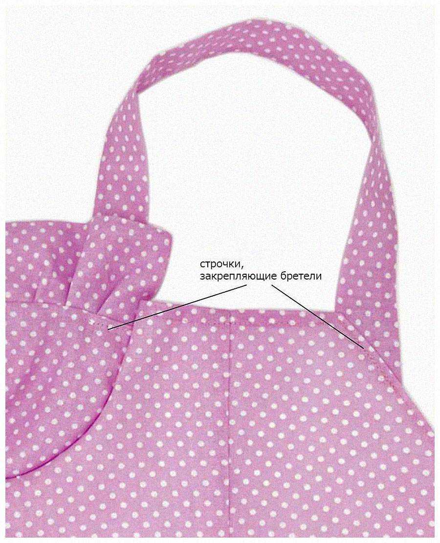 - Отмерьте необходимую длину бретелей, лишнее отрежьте, приложите концы с изнаночной стороны верха изделия, на небольшом расстоянии от люверсов и прострочите.