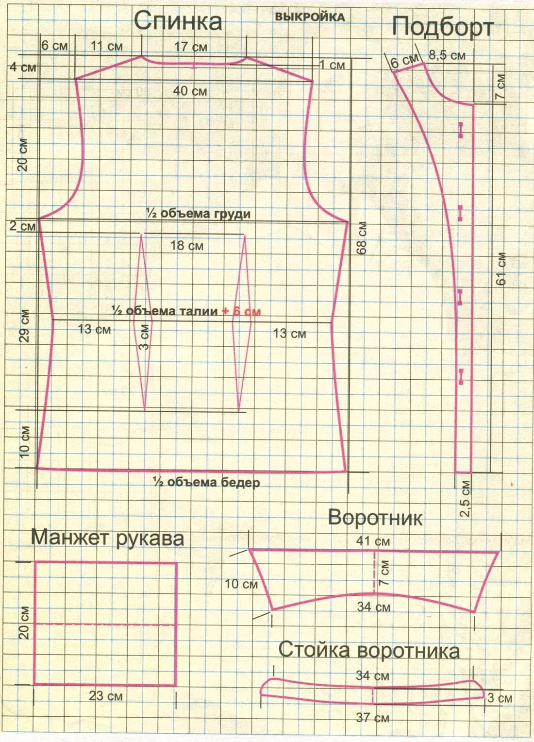 Подгоняем выкройку под нужный размер. Для этого вам нужно записать мерки с получившейся схемы на втором фото вот таким образом: