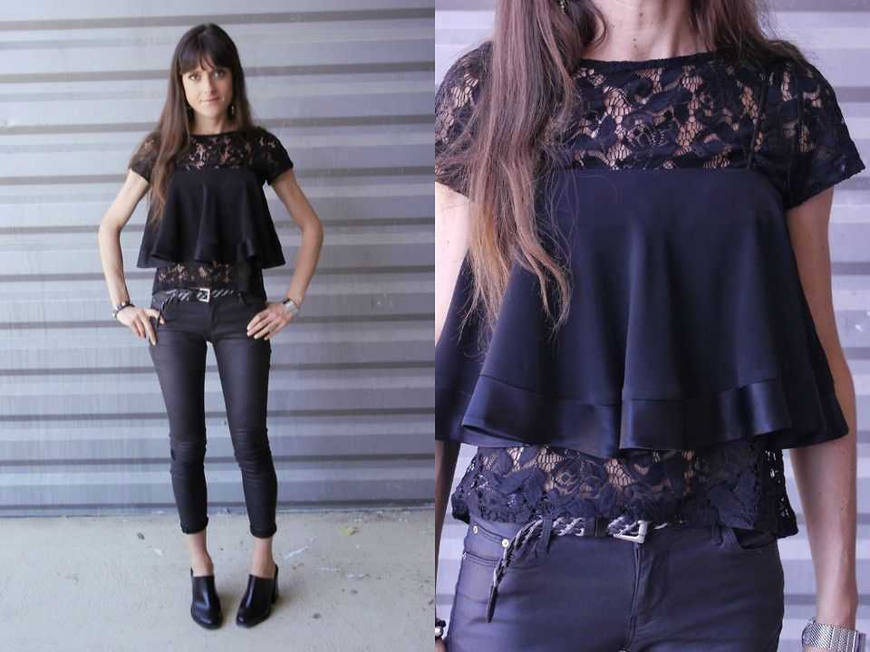 Если волан пришит к низу блузки — носите ее навыпуск. К примеру, белая блузка подойдет к узким джинсам или брюкам.