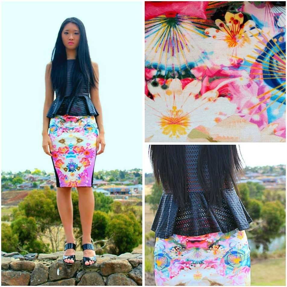 Сочетайте узкие юбки с активным принтом и однотонные блузки с воланом в нижней части. Дополните образ яркими лодочками и сумкой на длинном ремешке.