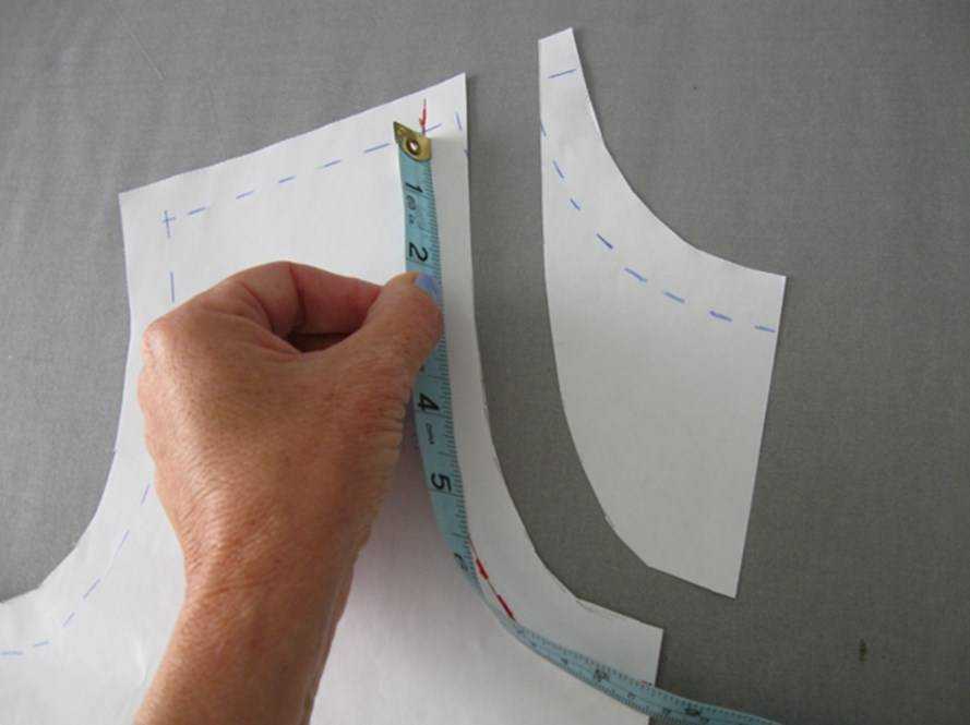 Замеряю раствор вытачки и откладываю его от конца плеча.