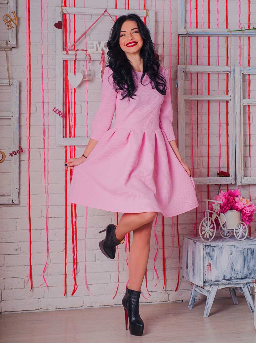 Платье имеет пышную расклешенную юбку. Она может быть многослойной. Такой вариант смотрится легко, кокетливо. Популярностью пользуются изделия с завышенной линией талии. Многих привлекает форма трапеция.
