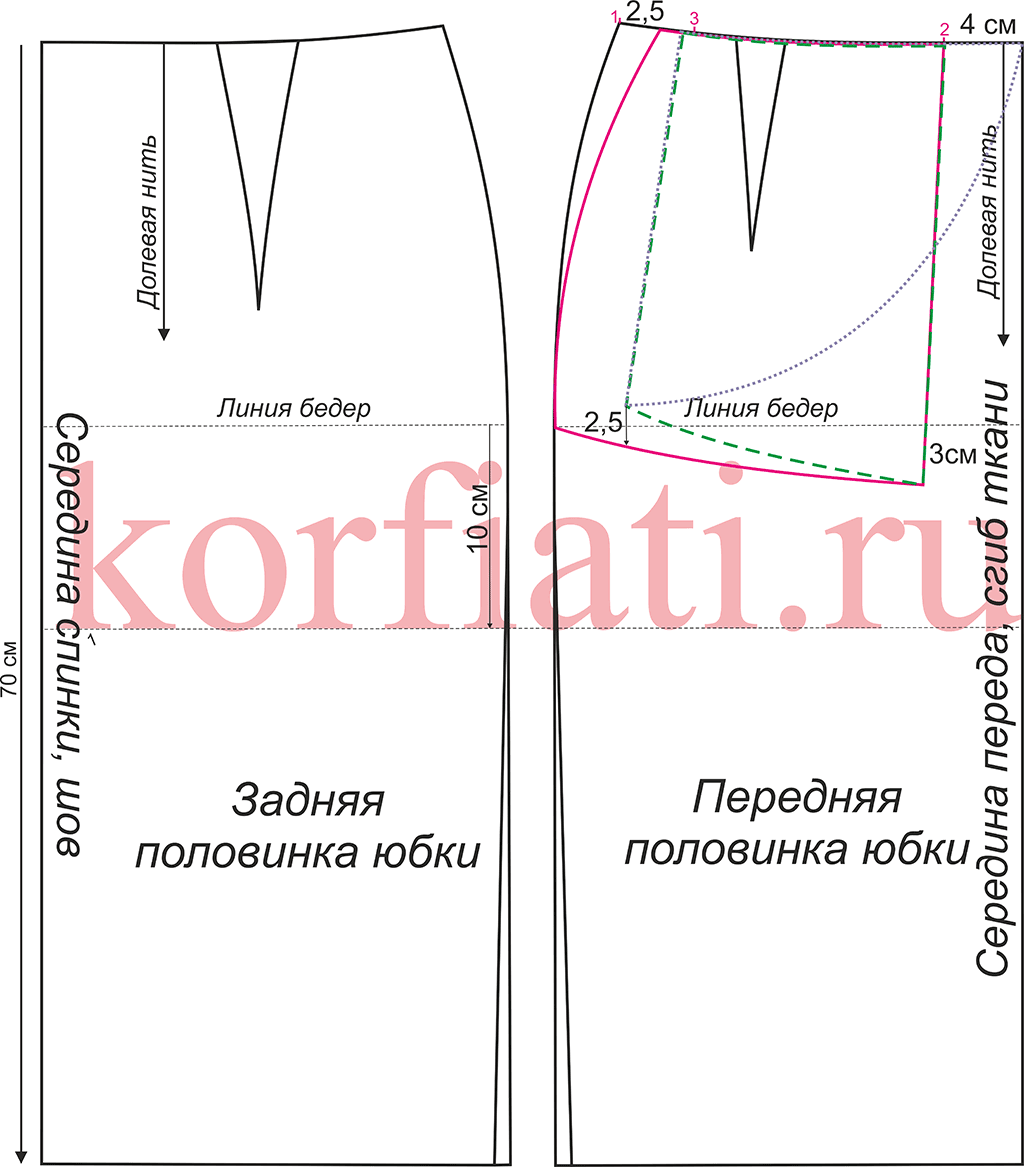 Рис. 1. Выкройка зауженной юбки – перед и спинка