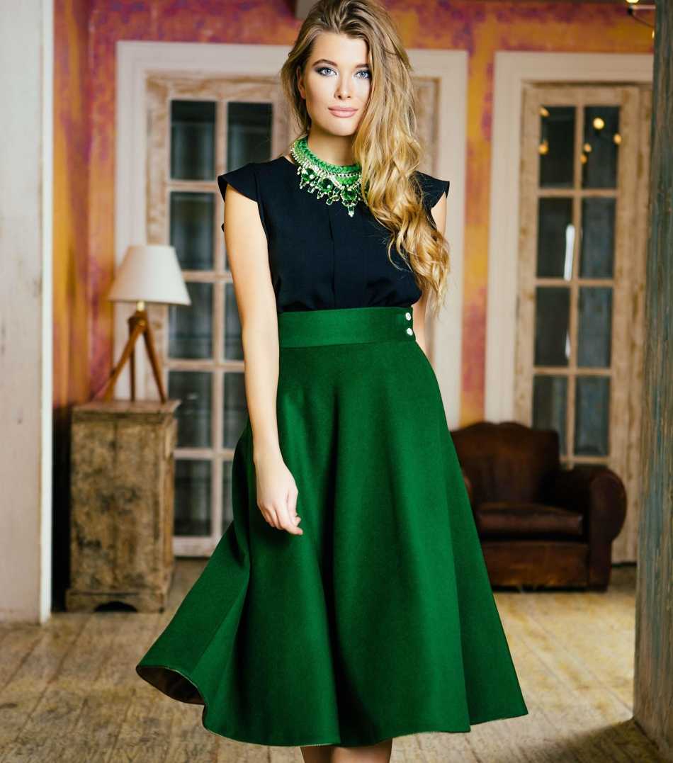 Зеленое платье с юбкой солнце