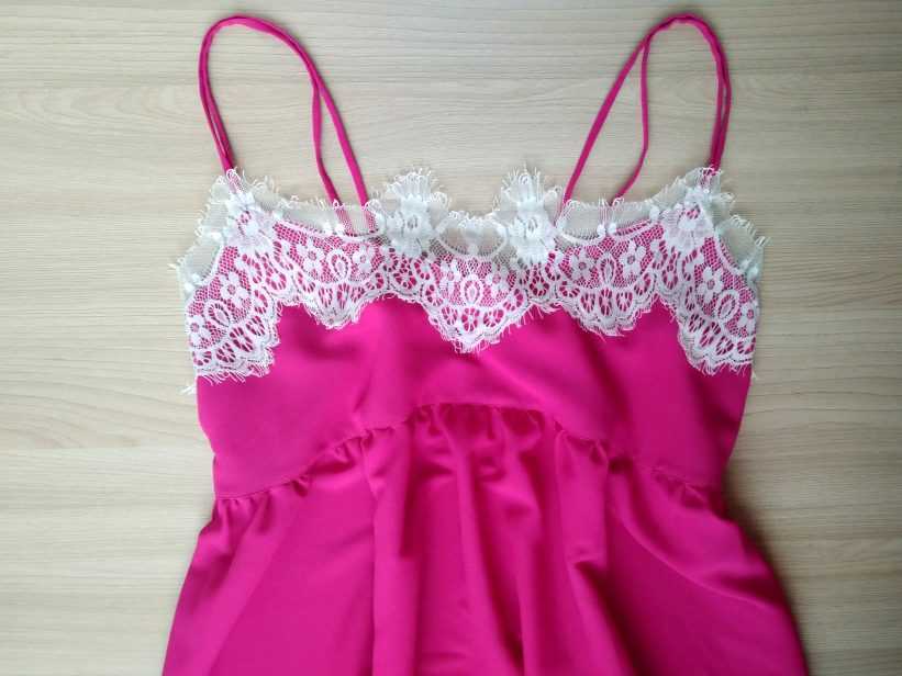 - Подшейте низ ночной рубашки. Для больших размеров нужно делать перед немного, на 2-3 см, длиннее спинки.
