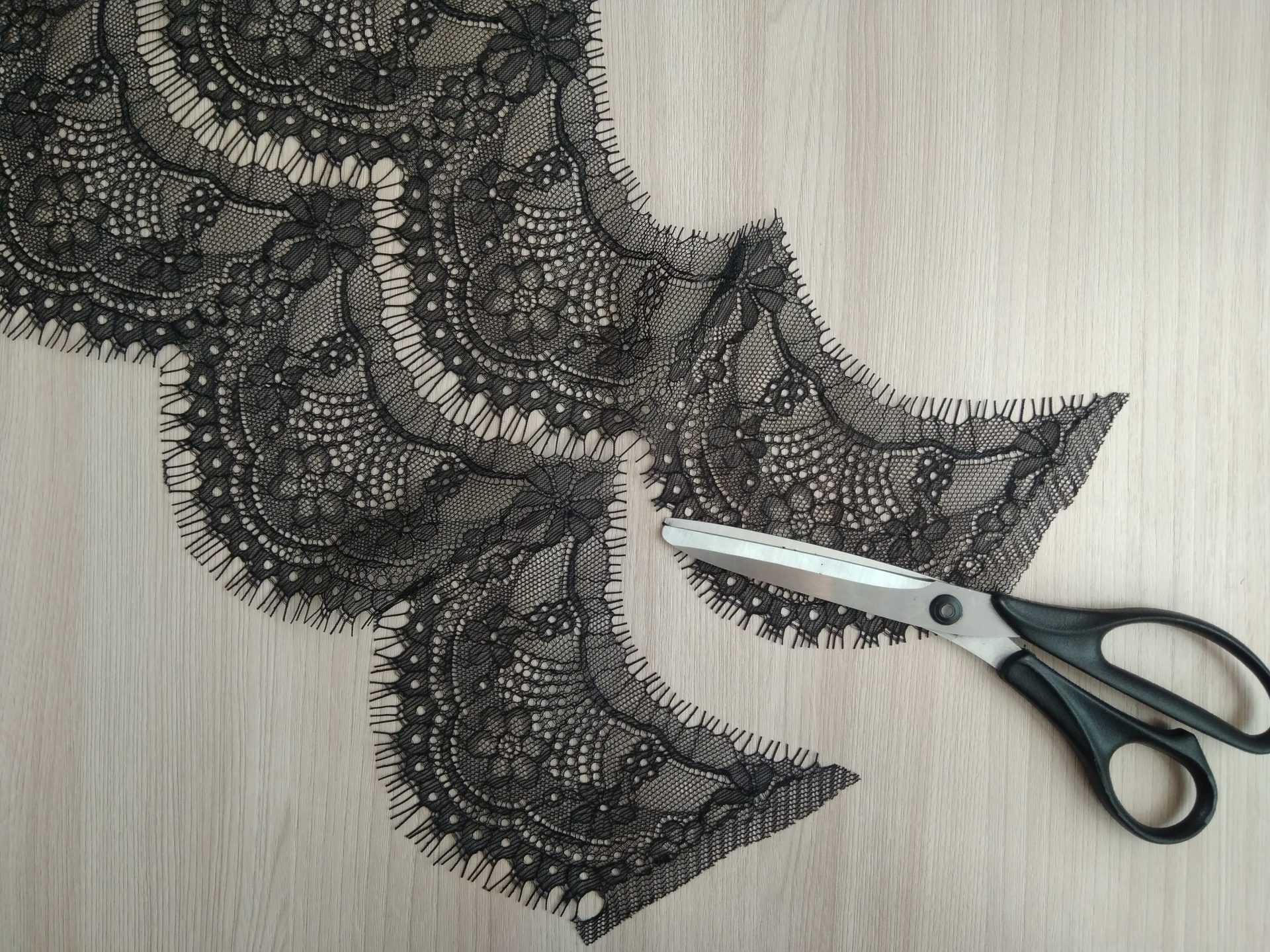 10. Нашиваю кружевную ленту по краю лифа на швейной машинке.
