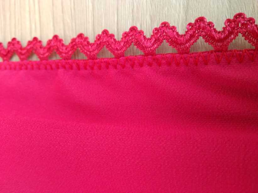 Потом я подумала и решила сделать еще одну строчку по верху кружева для того, чтобы оно не отгибалось.
