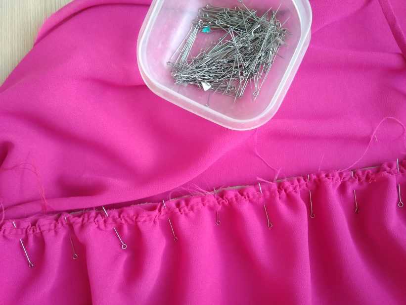 7. Соединяю детали лифа и полочки между собой портновскими булавками.
